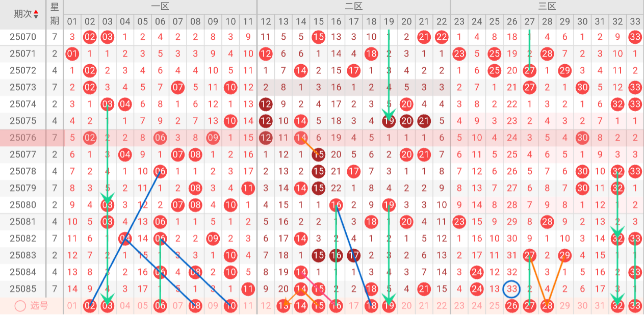 根据以上特点,我们对双色球第25086期进行如下分析: