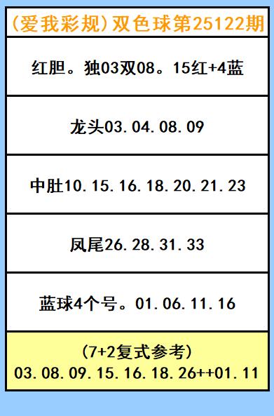 双色球第122期图文(爱我彩规),杀前两尾