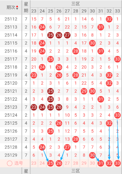 双色球三区(23-33)