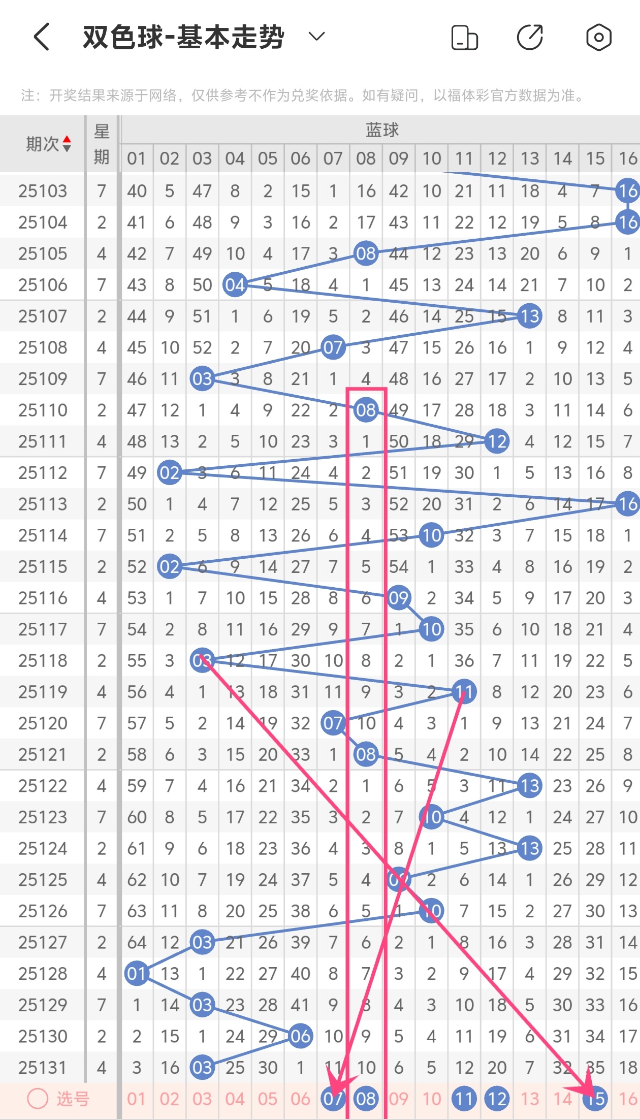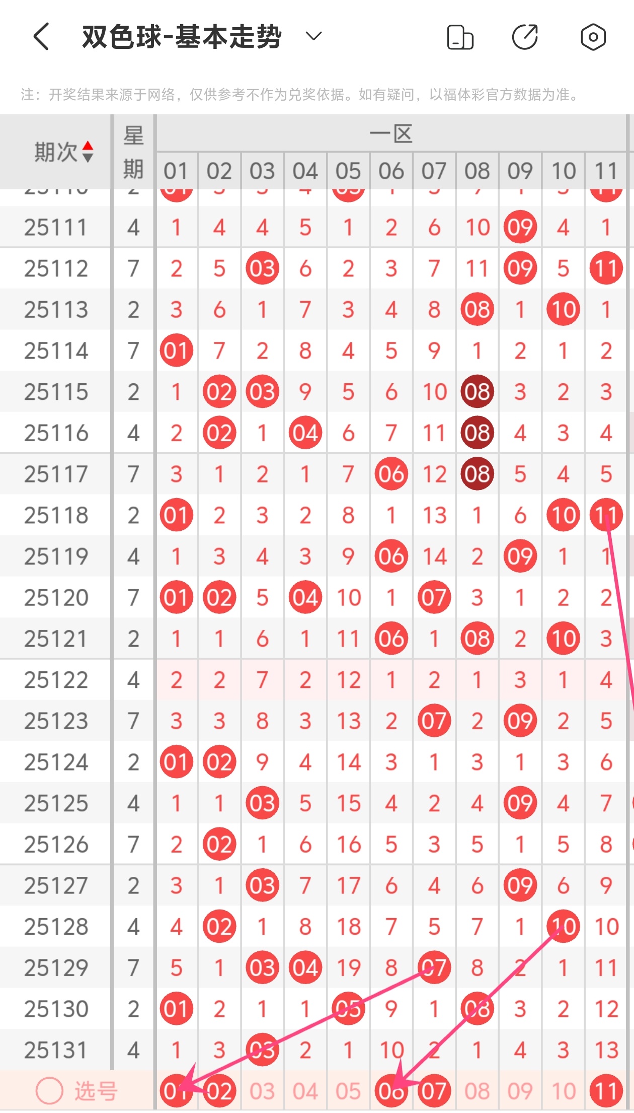 下面是我对2025132期福彩双色球的分析和预判,希望通过我的分析能让大家今晚大红!福彩双色球上期开奖号码如下图: