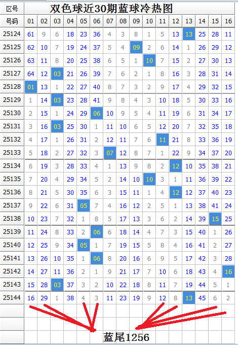 蓝球本期有热蓝8枚,冷蓝8枚,蓝球冷码数量一样。上期开出冷蓝,这是连续3期开出,由于近期蓝球冷热交替开出规律不明显,本期蓝球冷热难定。蓝球热码机会大些。