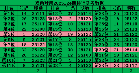 综上所诉,双色球第2025125期号码推荐: