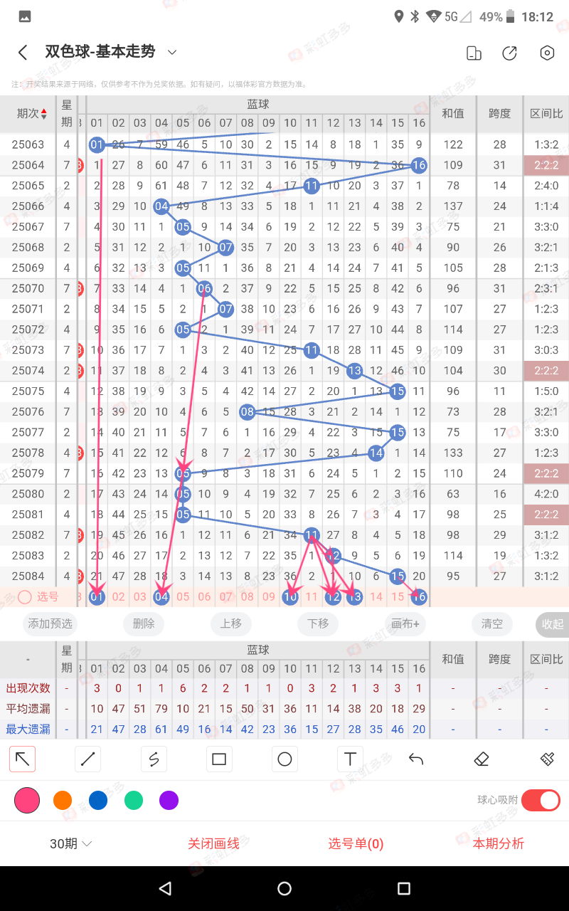 这个说明,二个红1+红2相加得出的和值,可以排除那个路数,也会错,甚至连错,抓有效规律,直到错为止,028-029期051-052,065,070,期错这期的蓝 2路不考虑,本期防隔期错