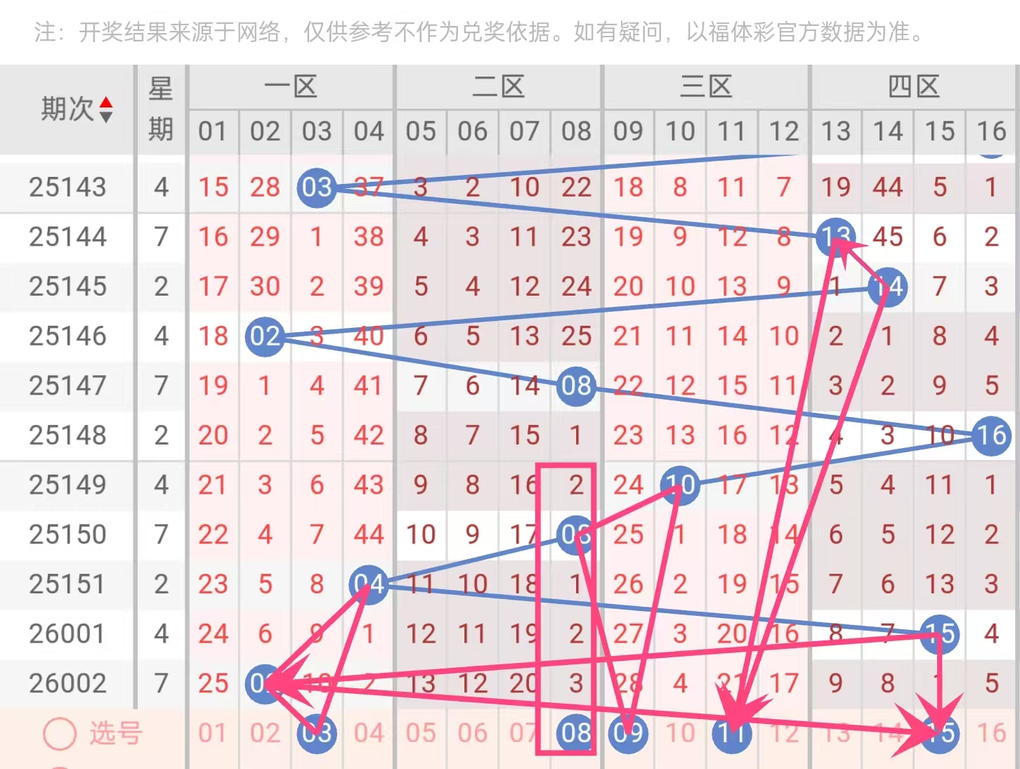 16:近5期未出现,且历史同期出现频率不高,继续看冷。