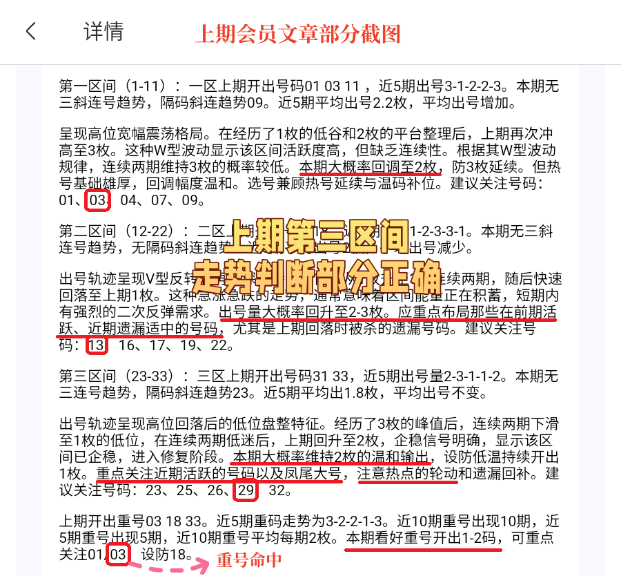 会员文章每个区间给出更详细的分析,说明整体走势的最新趋势,重号和连号均有推荐。