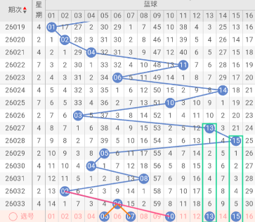 结合走势图综合判断, 蓝球推荐关注号码:05、07、10、13、15。