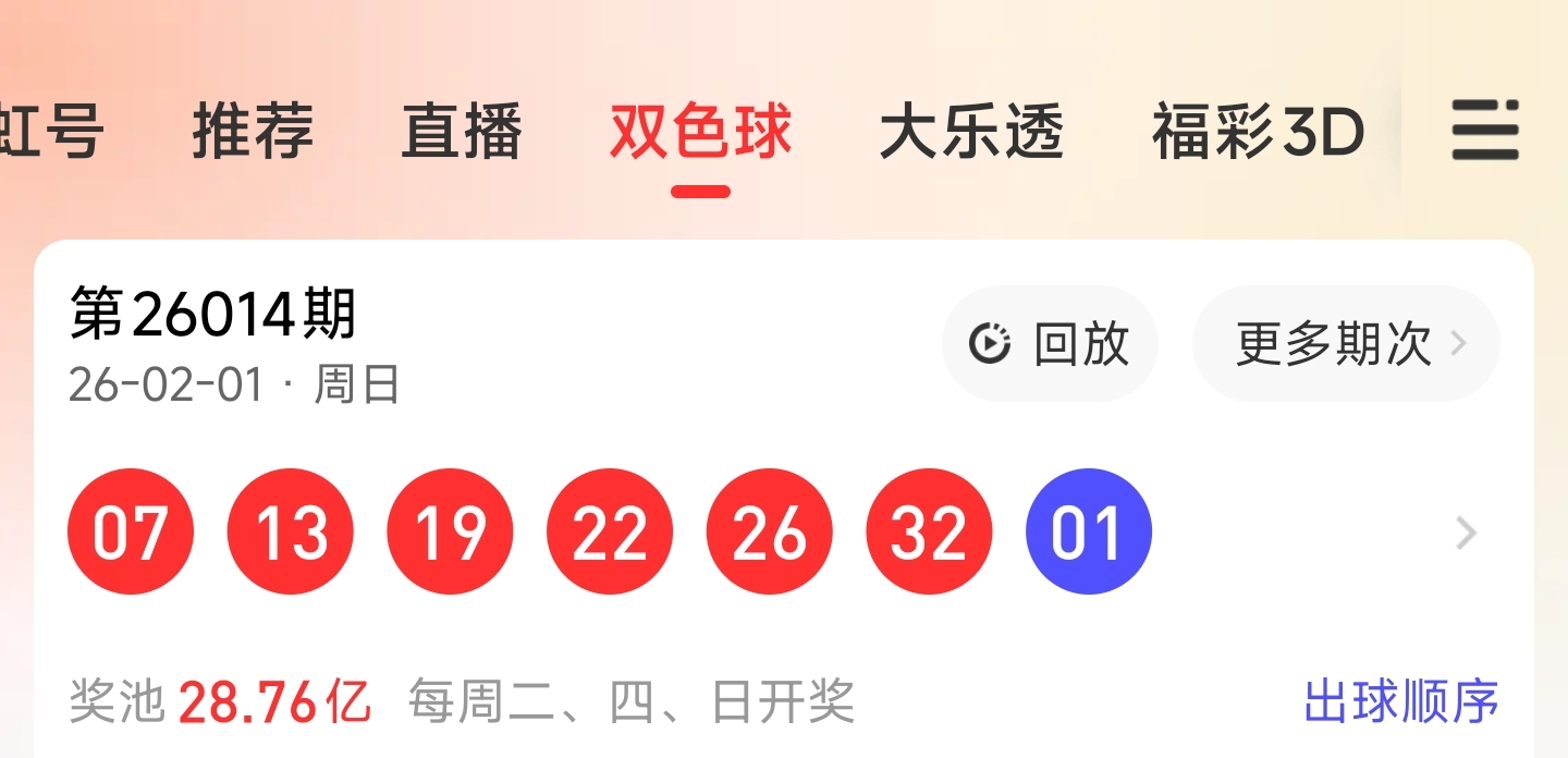 红球开出7,13,19,22,26,32,蓝球开出1。