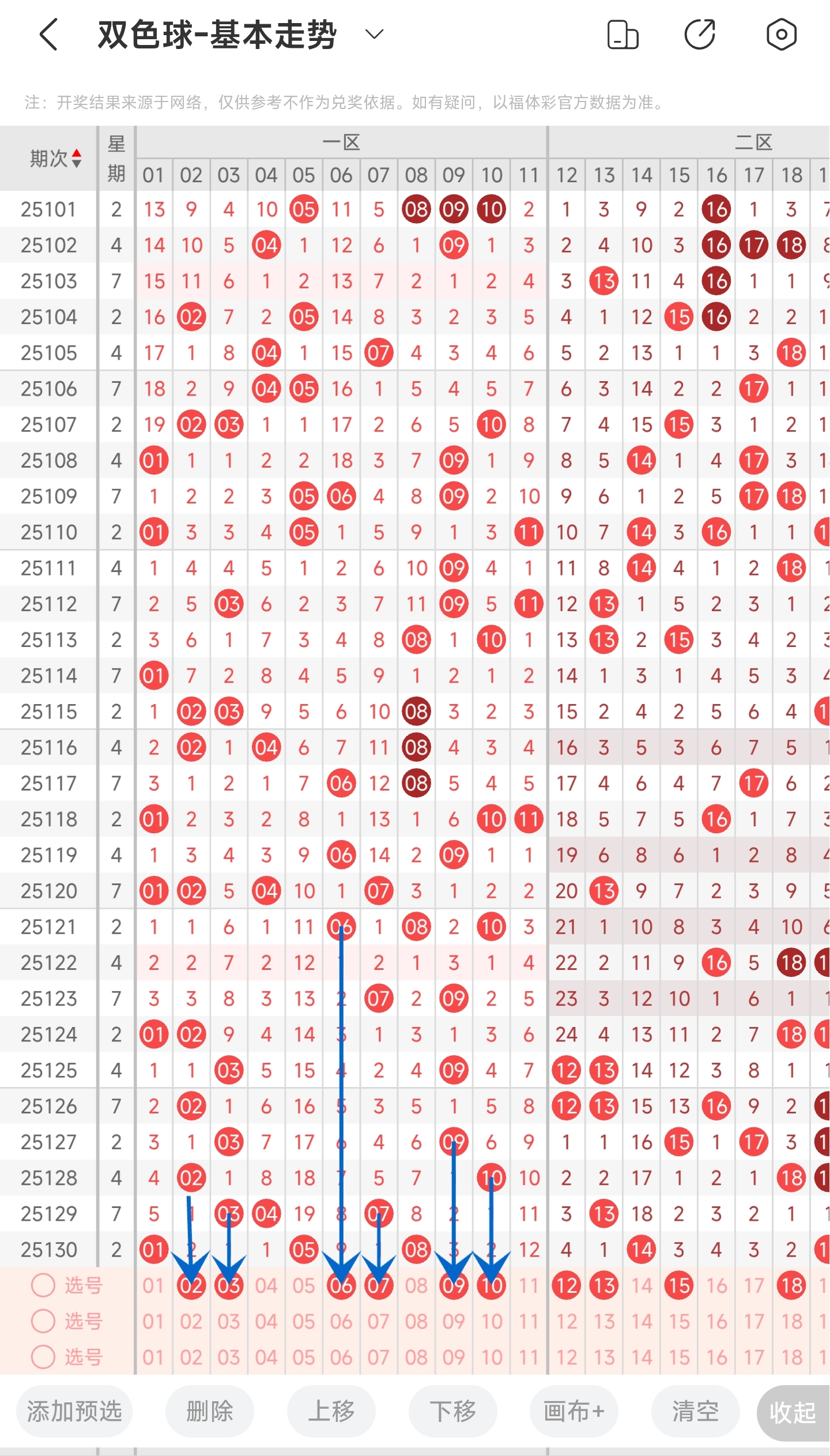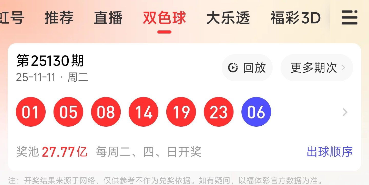 25130期双色球文章中推荐中命中114193个红球,命中蓝球6