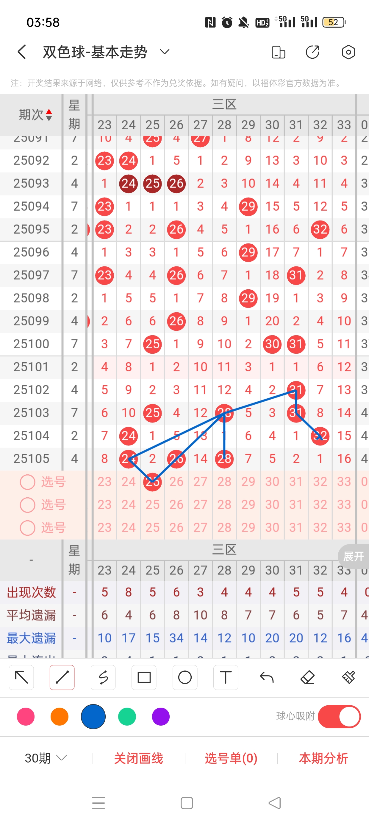 三区(23-33)近103期本区邻孤传43邻85孤6传,孤号热度高,本期着重邻传。近103期本区012路46:45:49,0/2路热度高,本着重1路。25已遗漏2期,与26之间呈现向左遗漏递减态势,需防。