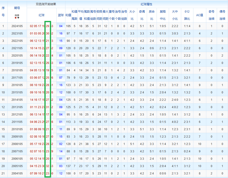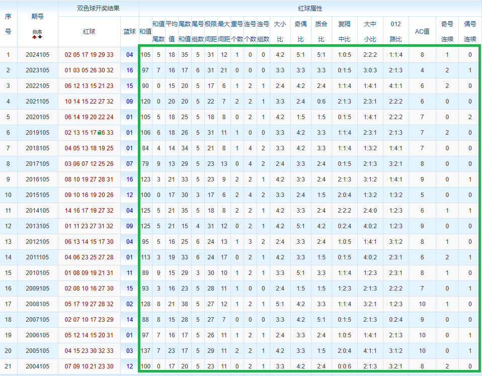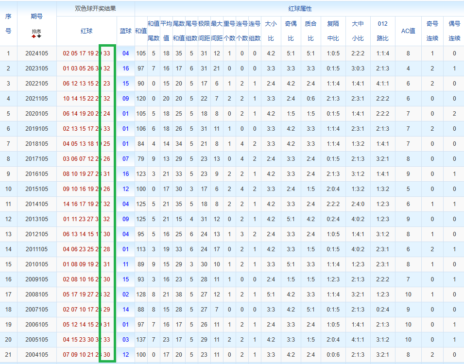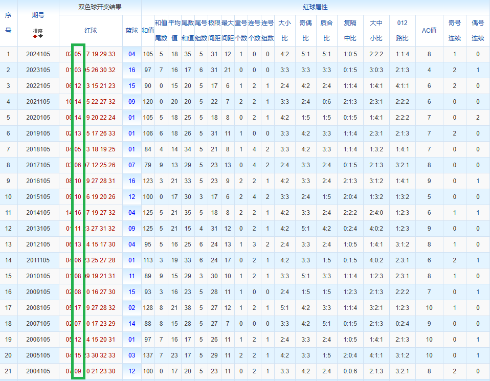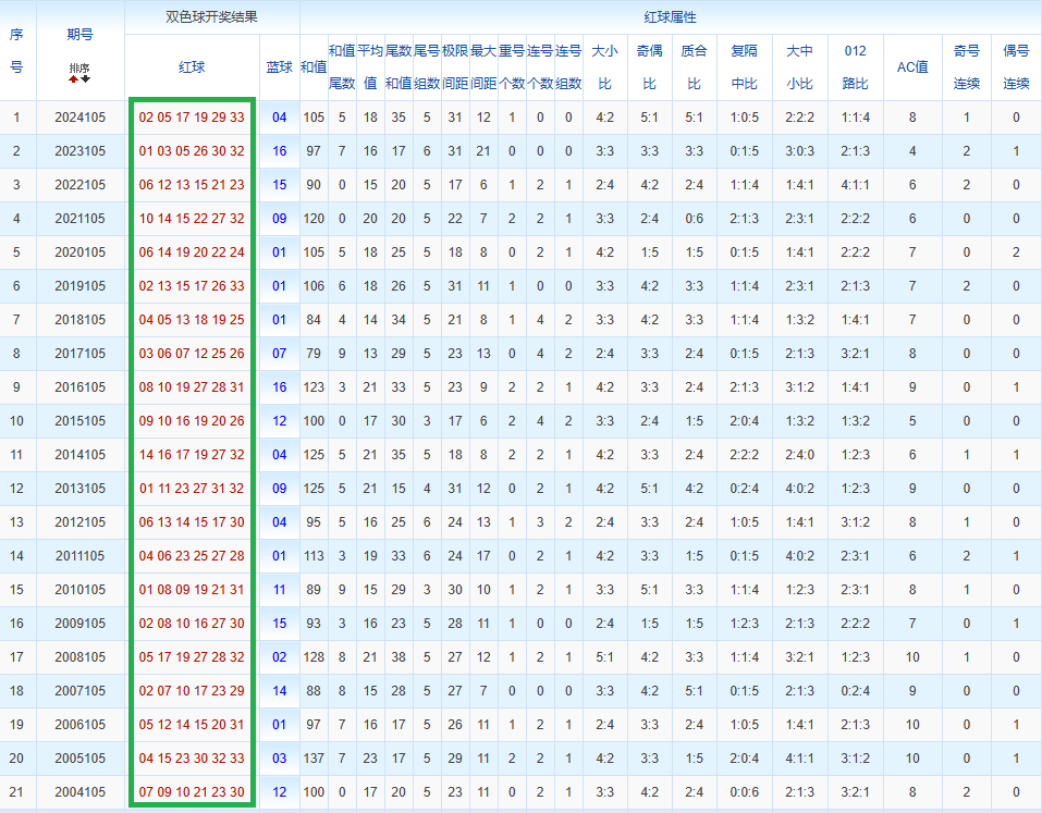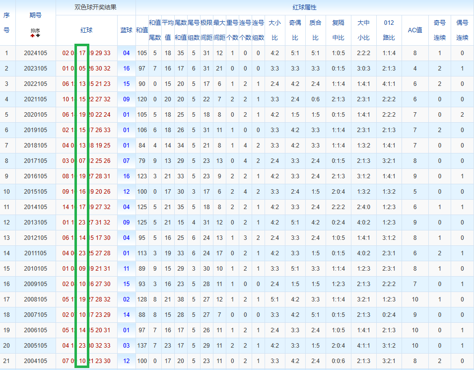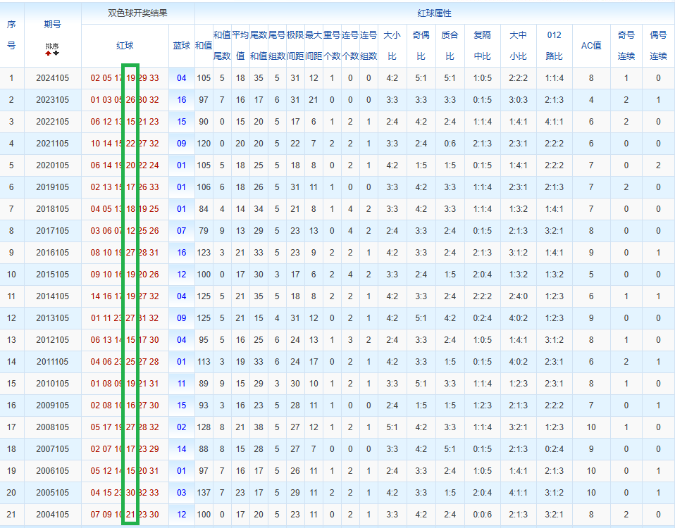 通过观察,我发现双色球往年同期的开奖数据与本期号码之间存在显著关联。具体来说,在红球中,从第一位至第六位,通常会有约4个位置上的数字与往年同期相同位置的号码一致;而蓝球号码中,也有多期开奖结果直接包含了往年同期的数字。因此,我们可以借助往年同期各位置上的号码,作为分析本期开奖情况的重要依据。在此基础上,还可结合往年同期的其他相关条件,进行综合性的号码组合推荐。