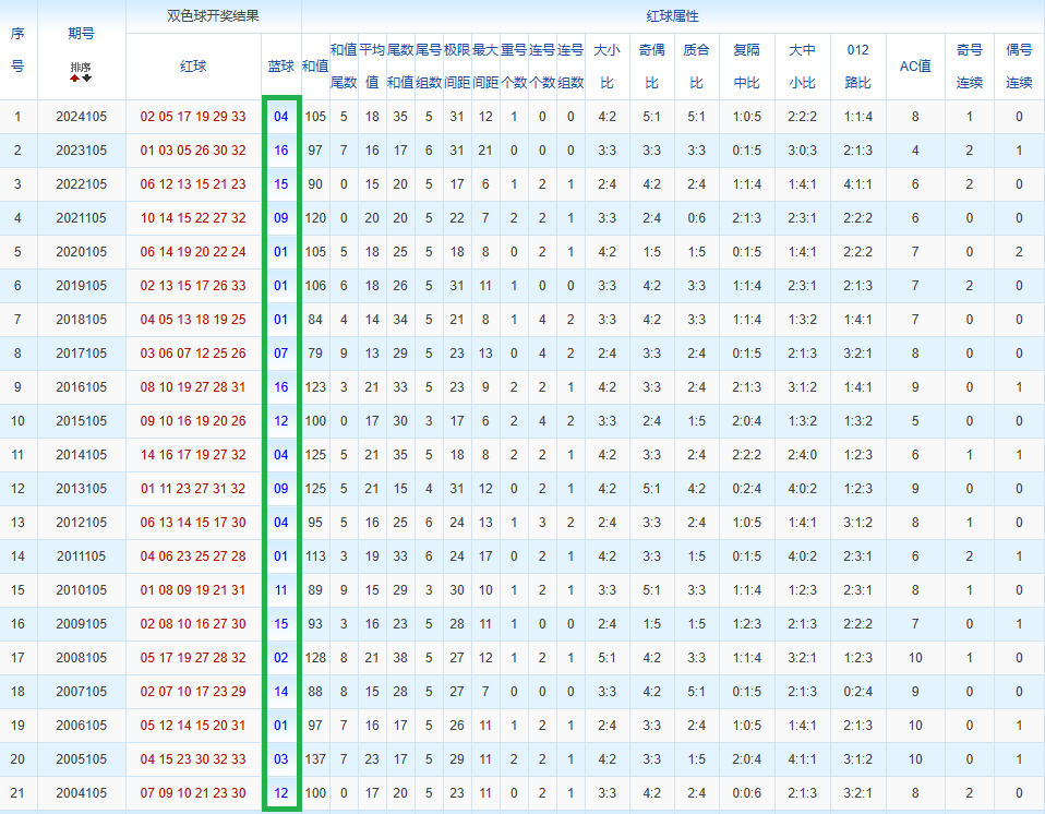 金莱双色球第105期:上期红球银胆05对,5码围蓝继续命中16等