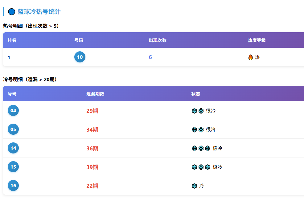 其中 10 和 12 较为活跃,值得观察;而那些长期缺席的蓝球,则可适度放缓关注。