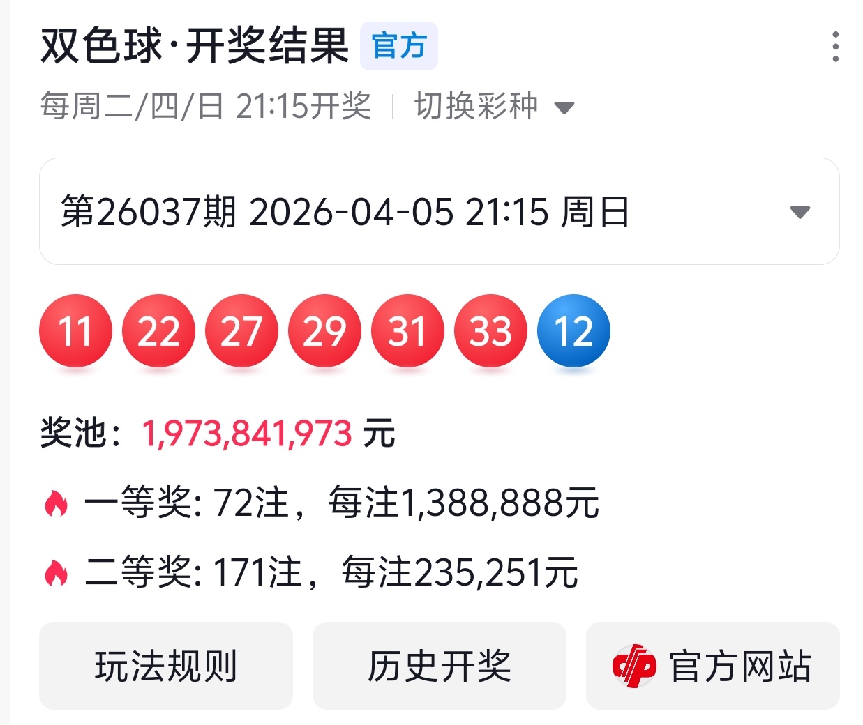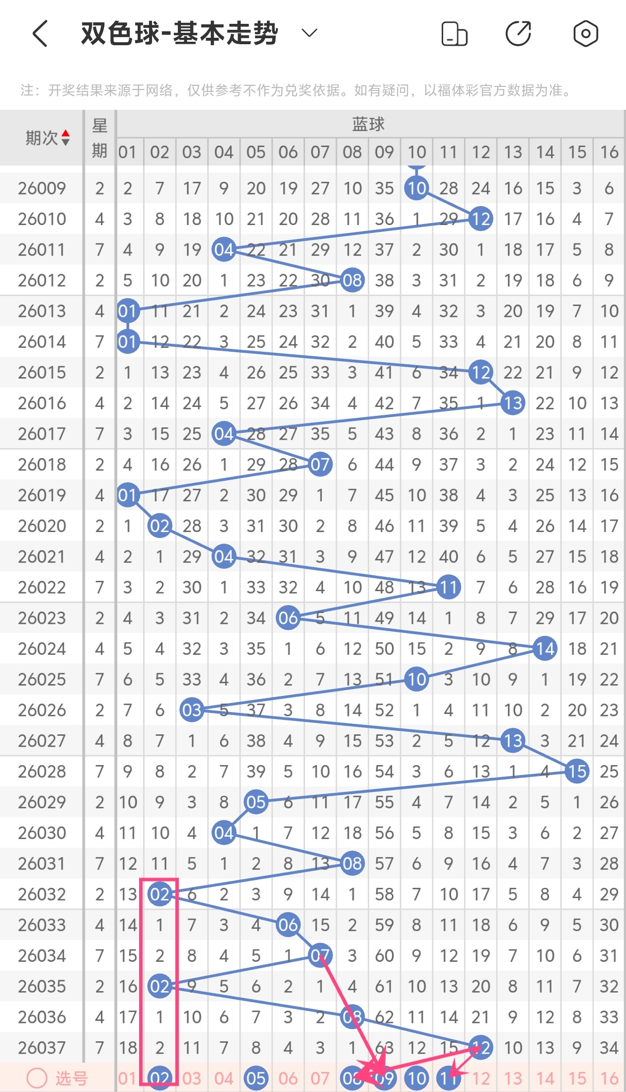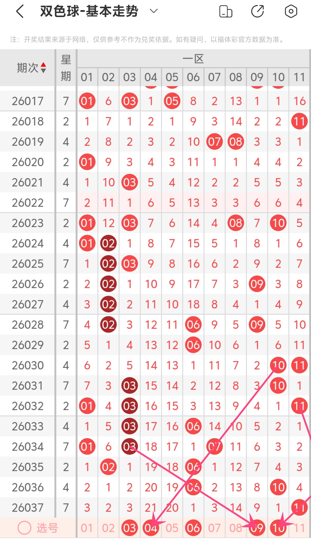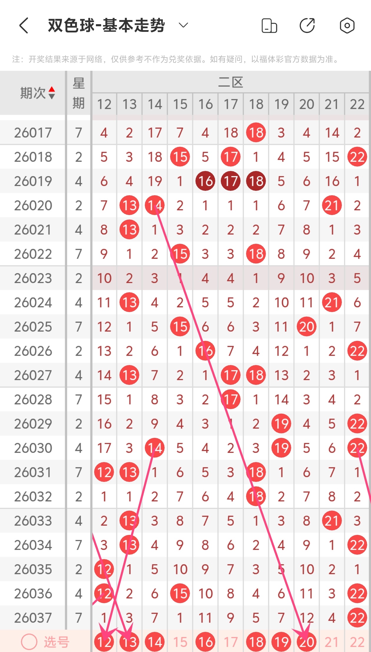 下面是我对2026038期福彩双色球的分析和预判,希望通过我的分析能让大家今晚大红!福彩双色球上期开奖号码如下图: