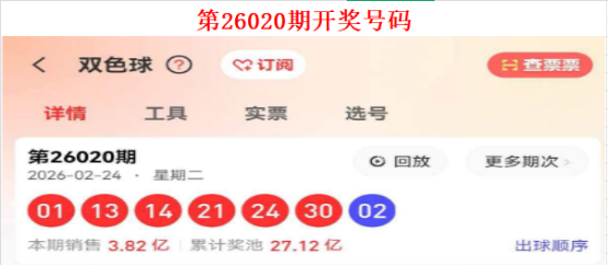 · 2026020期(2月24日) 红球:01、13、14、21、24、30 | 蓝球:02