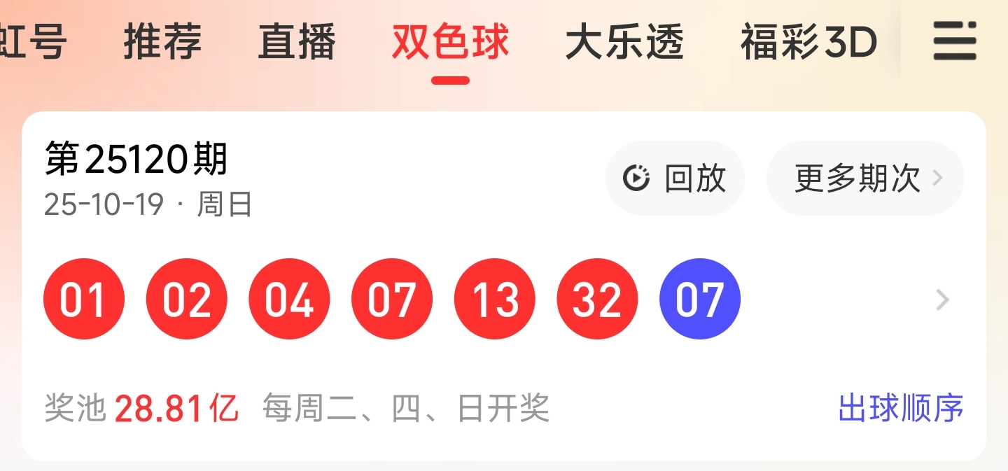 第25114期双色球文章中推荐中命中1,20,25等3个红球。