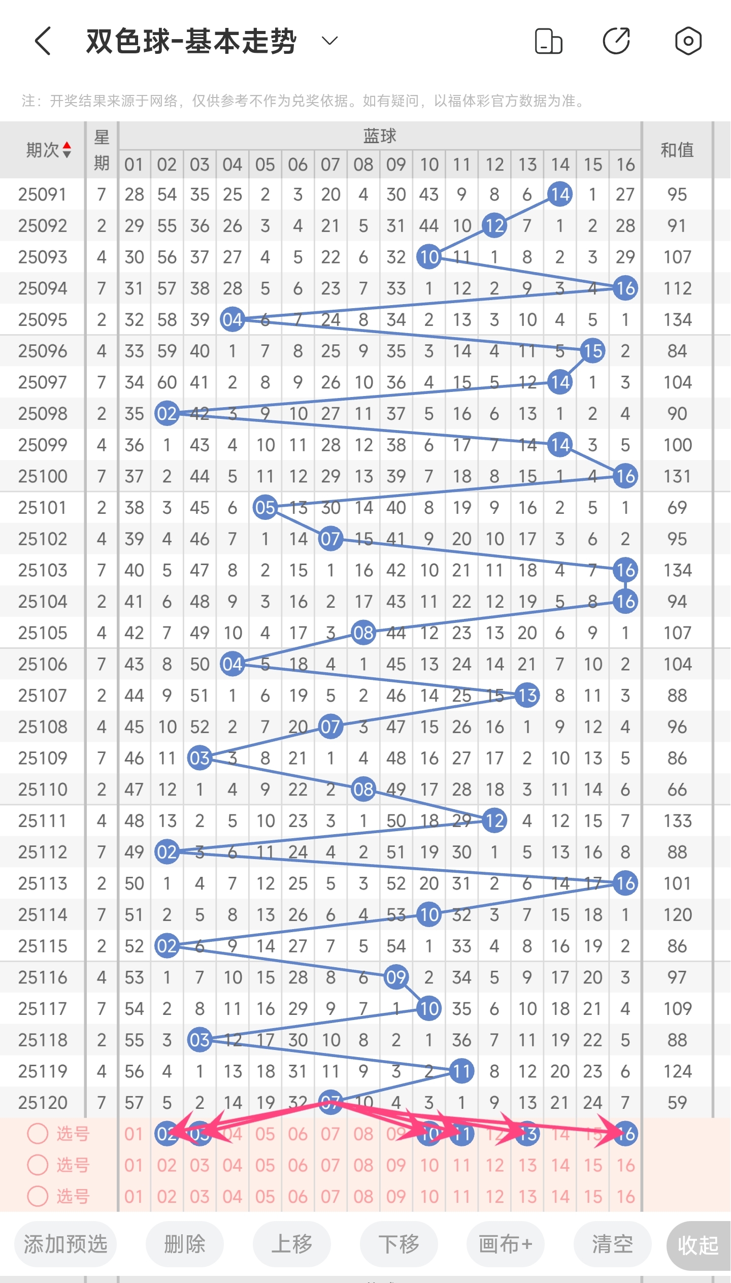 蓝球推荐:2,3,10,11,13,16。