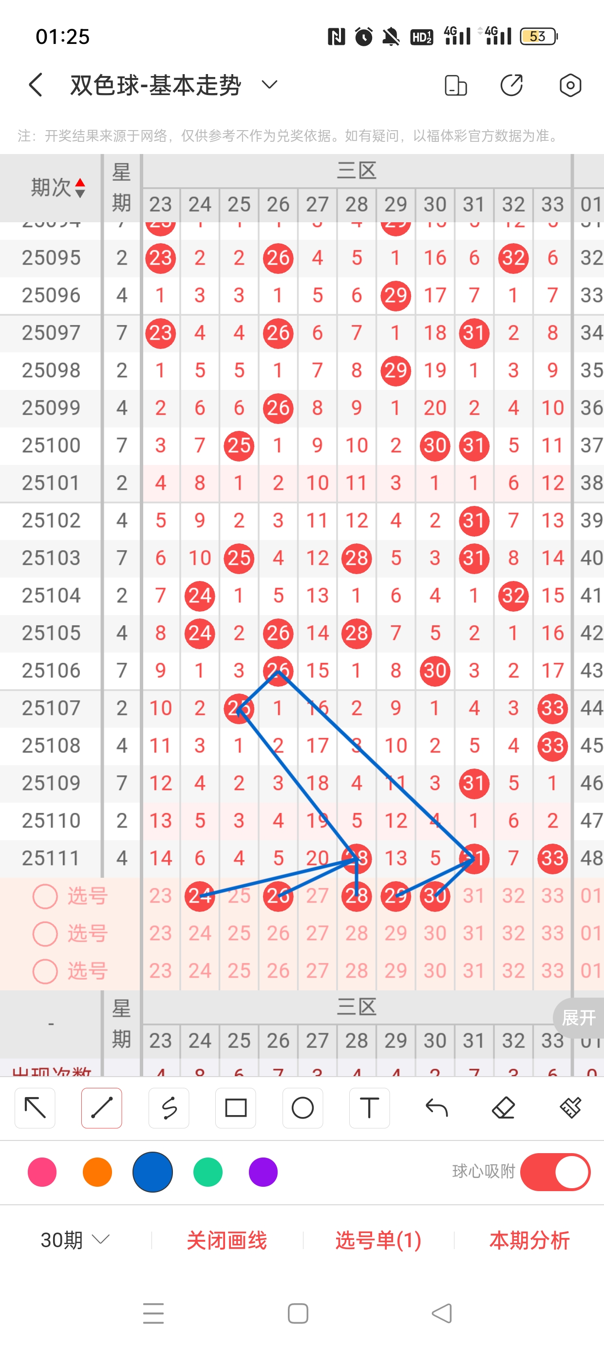 三区(23-33)近109期本区邻孤传43邻91孤6传,孤号热度高,本期着重邻传。近109期本区012路46:48:52,1/2路热度高,本着重0路。24、26分别遗漏6期、5期,两者与28之间呈现向左遗漏递减态势,需防。28作为传号,呈现直落回补态势,需防。29、30分别遗漏13期、5期,两者与31之间呈现向左遗漏递减态势,需防。