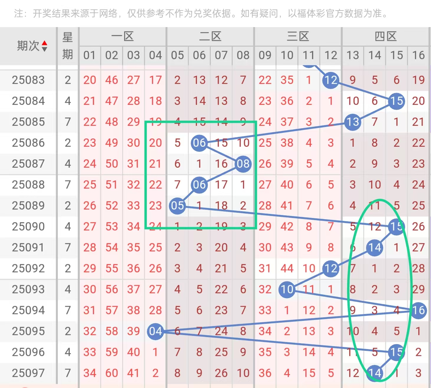 近期蓝球号码多在 04–16 之间波动,尤其是 11、14、15 频繁出现。建议关注这些热门蓝球,同时注意冷号回补(如02、07、10)。