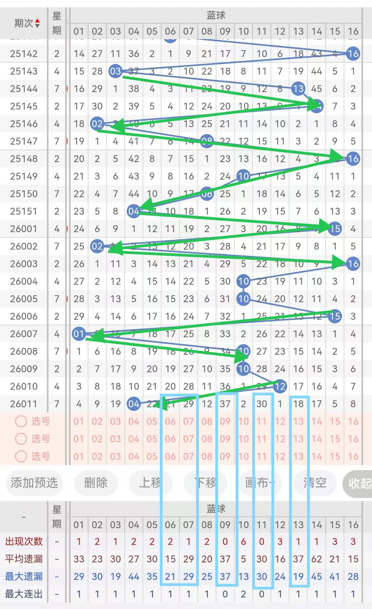 邻号:与上期开奖号相邻的号码,例如:上期开出17则邻号16、18