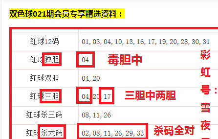 会员文章,增加了一些关键参数分析和结果,例如红球龙头凤尾胆码杀码精选十二码和三蓝等,有兴趣的可去参阅【会员专享】文章。加入会员方法如下: