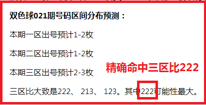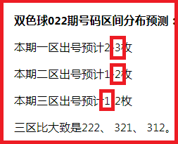 双色球023期号码区间分布预测: