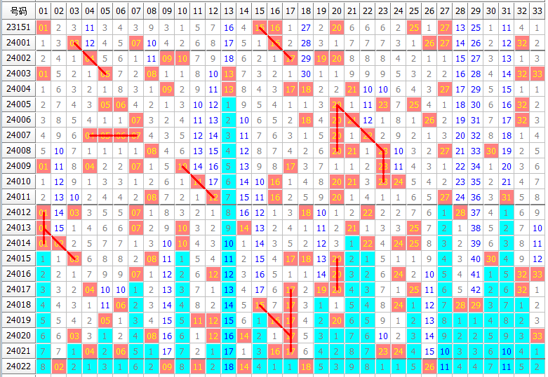 双色球023期冷热号码及出号趋势分析: