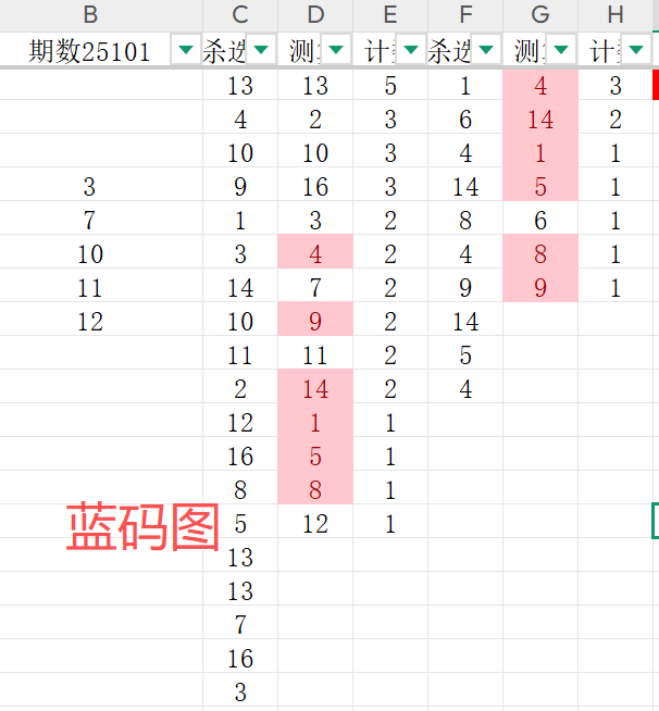 首先可以看一下蓝码的对比结果通过两个图表数据的对比,我们把蓝码的范围确定为3 7 10 11 12