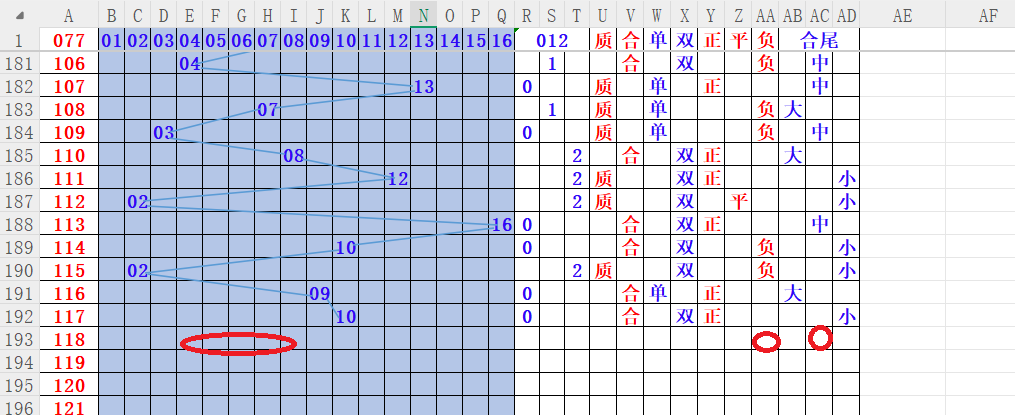 如上图4,质合分析,质数连续两期,本期重点合  03 04 05 07 15 关注 。