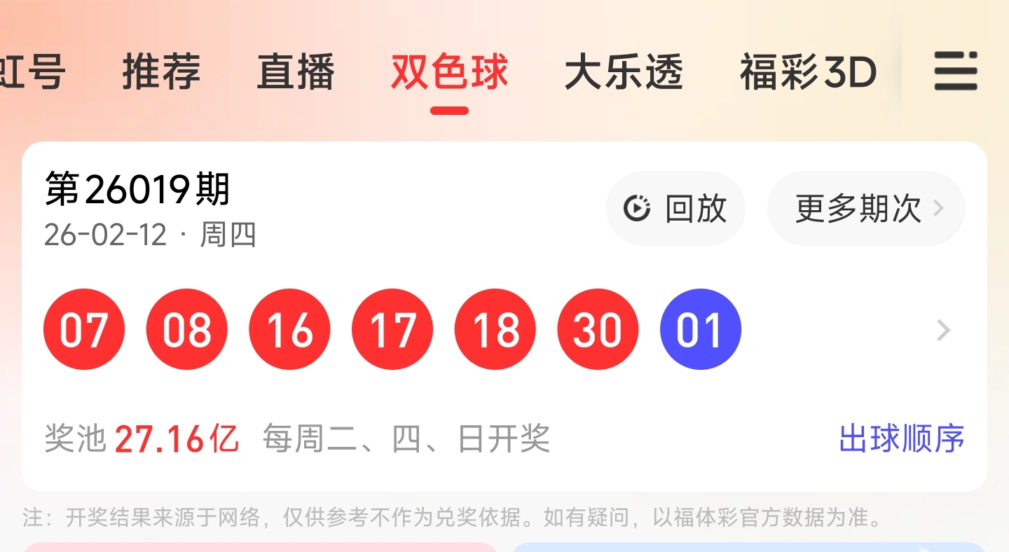 第26019期双色球文章中推荐中命中7,8,16,18等4个红球。