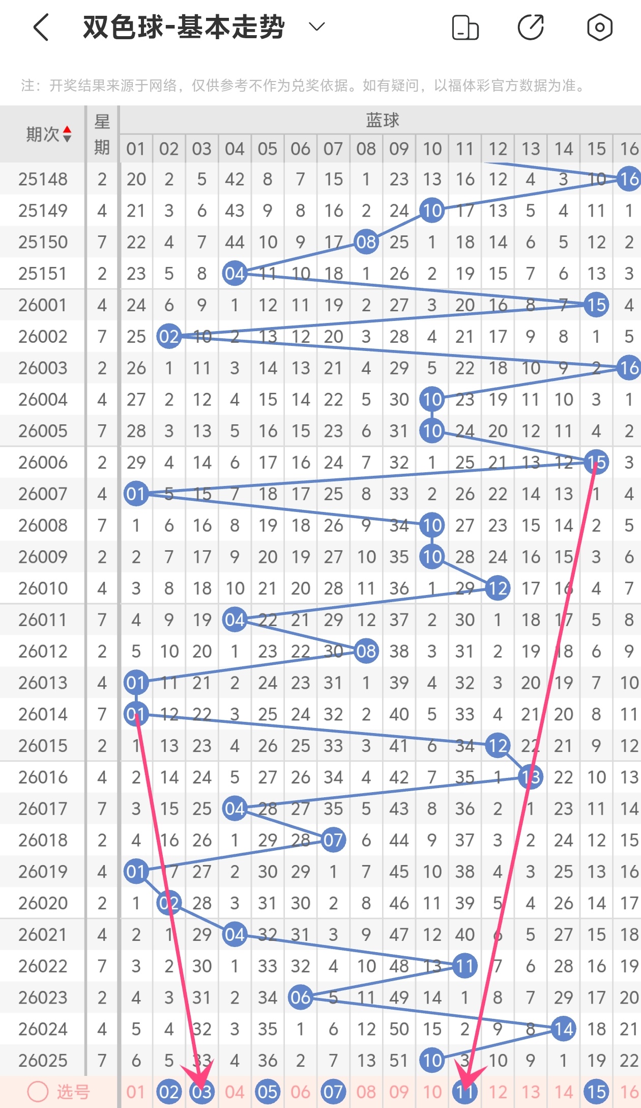 下面双色球的蓝球走势图分析: