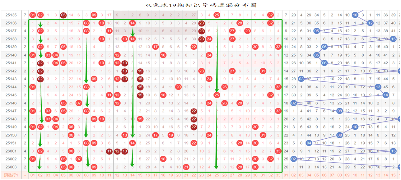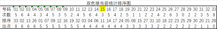 红球15码大底统计顺序:33,02,13,26,01,07,12,16,19,32,03,04,11,14,17