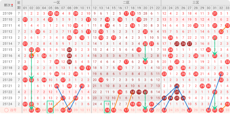 根据以上特点,我们对双色球第25125期进行如下分析: