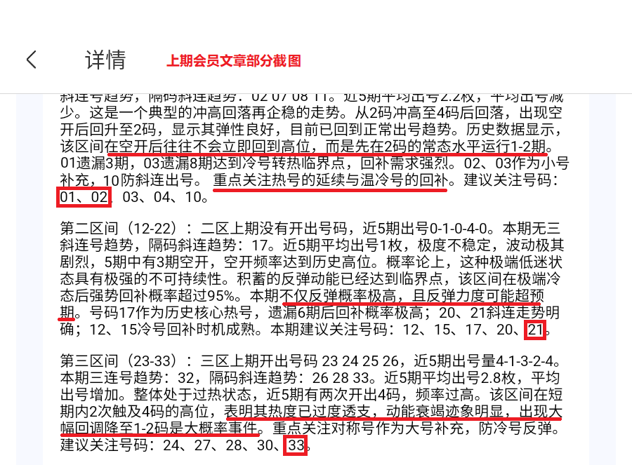 *注:区间详细分析,龙头,凤尾,胆码推荐为会员文章专属。