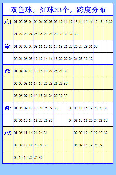 双色球红球跨度组合,本文用跨度分析法。