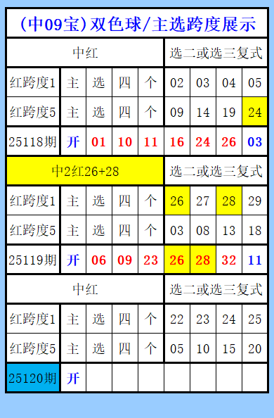 双色球第120期图文(中09宝),主选跨度展示