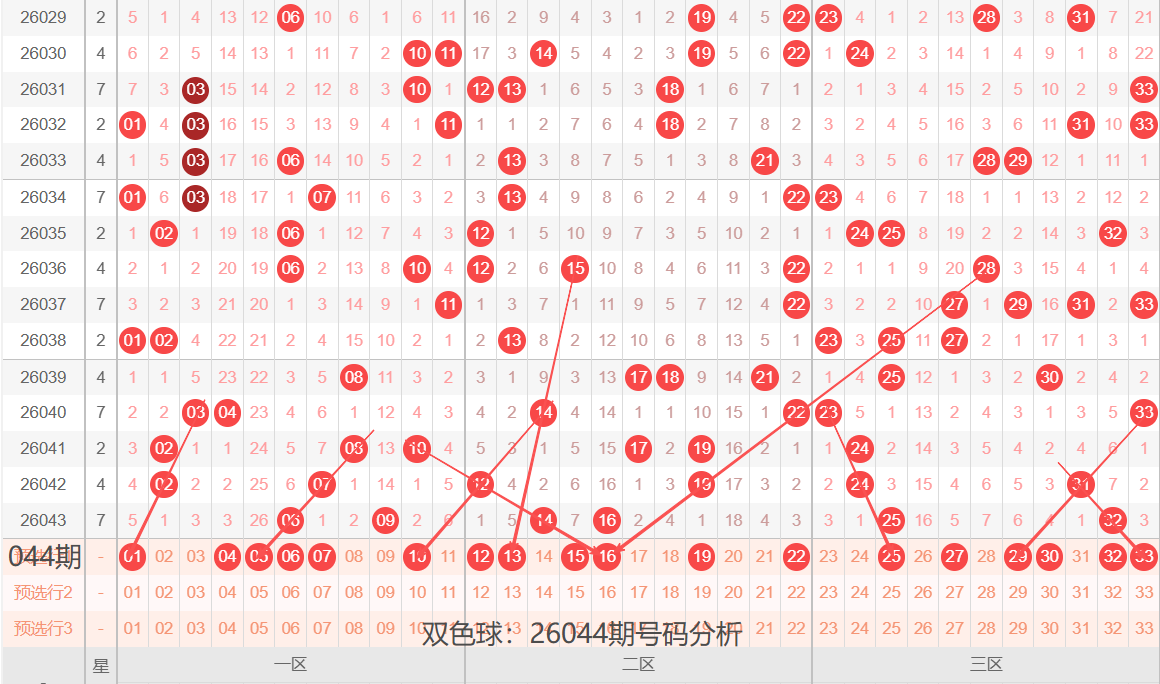 双色球:26044期号码落位分析