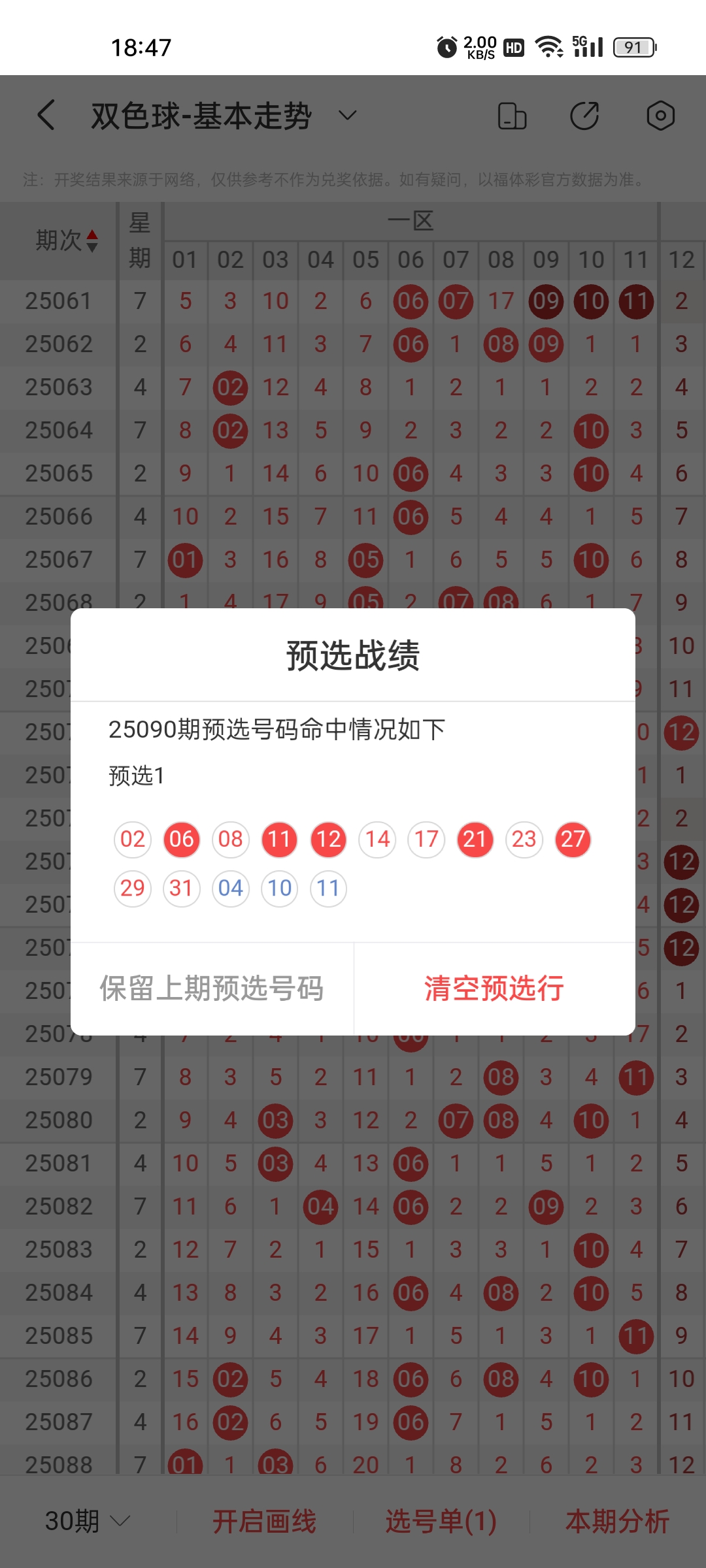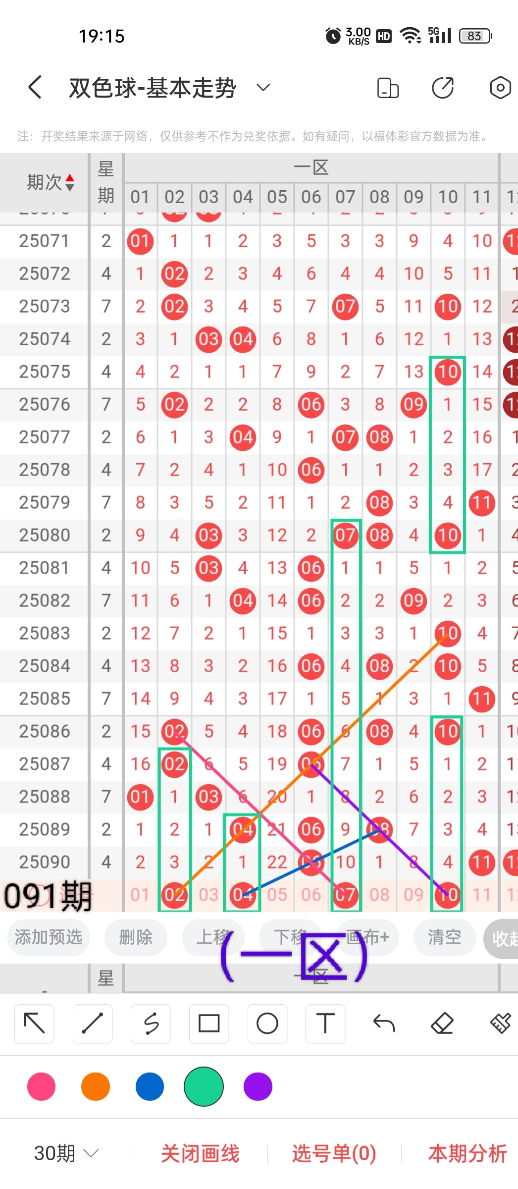 通过以上对上期的简单回顾,下面进入双色球第2025091期(下面简称本期)的选号分析:
