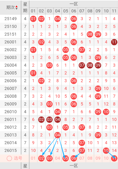 根据走势图可以看出当区段,006期开出02.06二个号码球 ,007期开出09一个号码球 ,008期开出06.09二个号码球 ,009期开出03.06二个号码球 ,010期开出04.09.10三个号码球 ,011期开出02.03.04三个号码球 ,012期开出03.05.07三个号码球 ,013期开出04.09个号码球 ,014期开出07一个号码球 ,015期开出07.10个号码球 ,按照如此规律本期当前区判断可能会开出2双或1双。我们看下当前区上期开出07重叠号,那么本期当前区要定重叠号的情况下可关注10号码球。再看下当前区段上期没有开出斜连号,当期选号得留意06斜连号。建议重点关注02.03.05.06.11