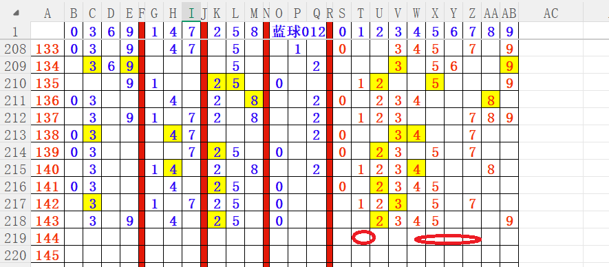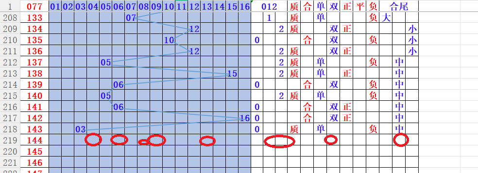 如上图4,012路分析012路,本期重点10路。重点 04 06 08 09 14