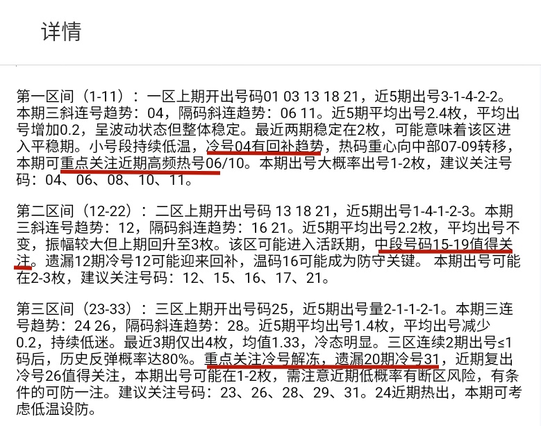 下面是会员文章截图,每个区间给出更详细的分析,推荐关注号码一区04,06二区15-19号段,三区31,判断正确,上期红球命中4码!