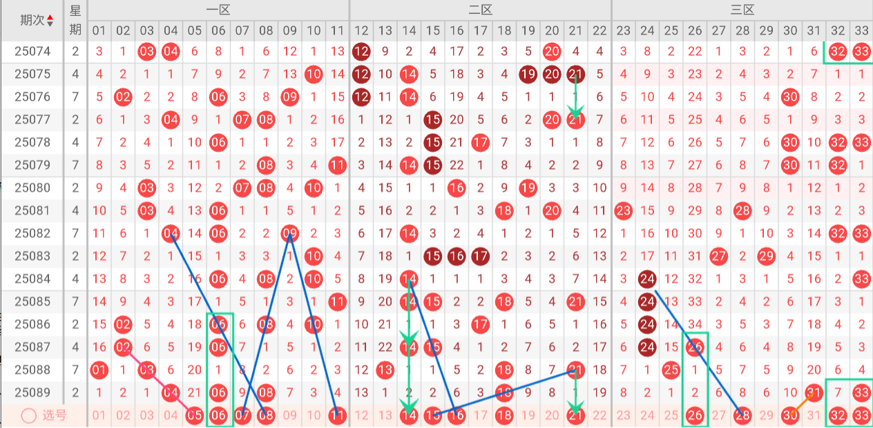 根据以上特点,我们对双色球第25890期进行如下分析: