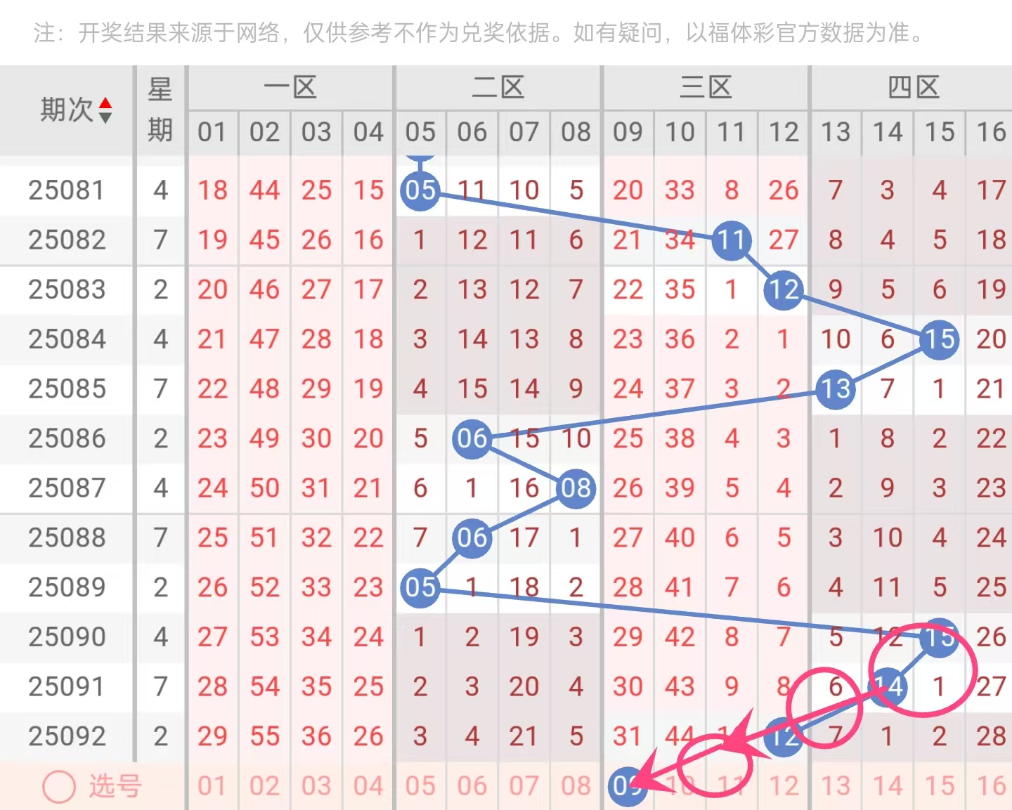- 16:遗漏值仅4期,但量子纠缠模型显示其与热号红球(如25)关联度<0.2,孤立开出概率低。