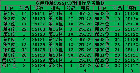 综上所诉,双色球第2025130期号码推荐: