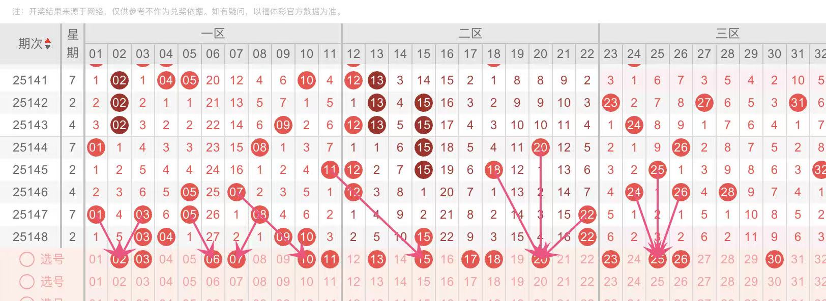 红球三区比:本期红球三区比为 4:2:0,近五期红球区间比分别为 2:2:2 ,1:3:2,2:1:3,4:1:1 , 4:2:0本期预计红球三区比为 2:2:2。