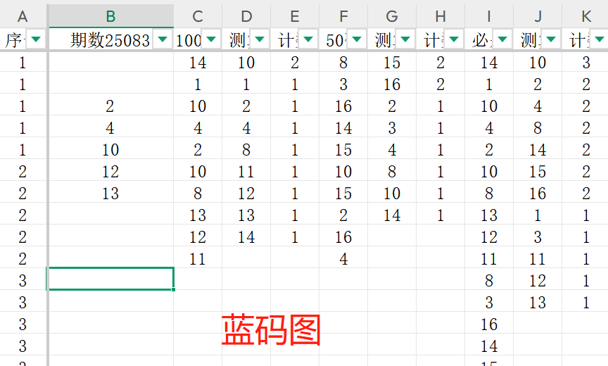 首先可以看一下蓝码的对比结果通过两个图表数据的对比,我们把蓝码的范围确定为2 4 10 12 13