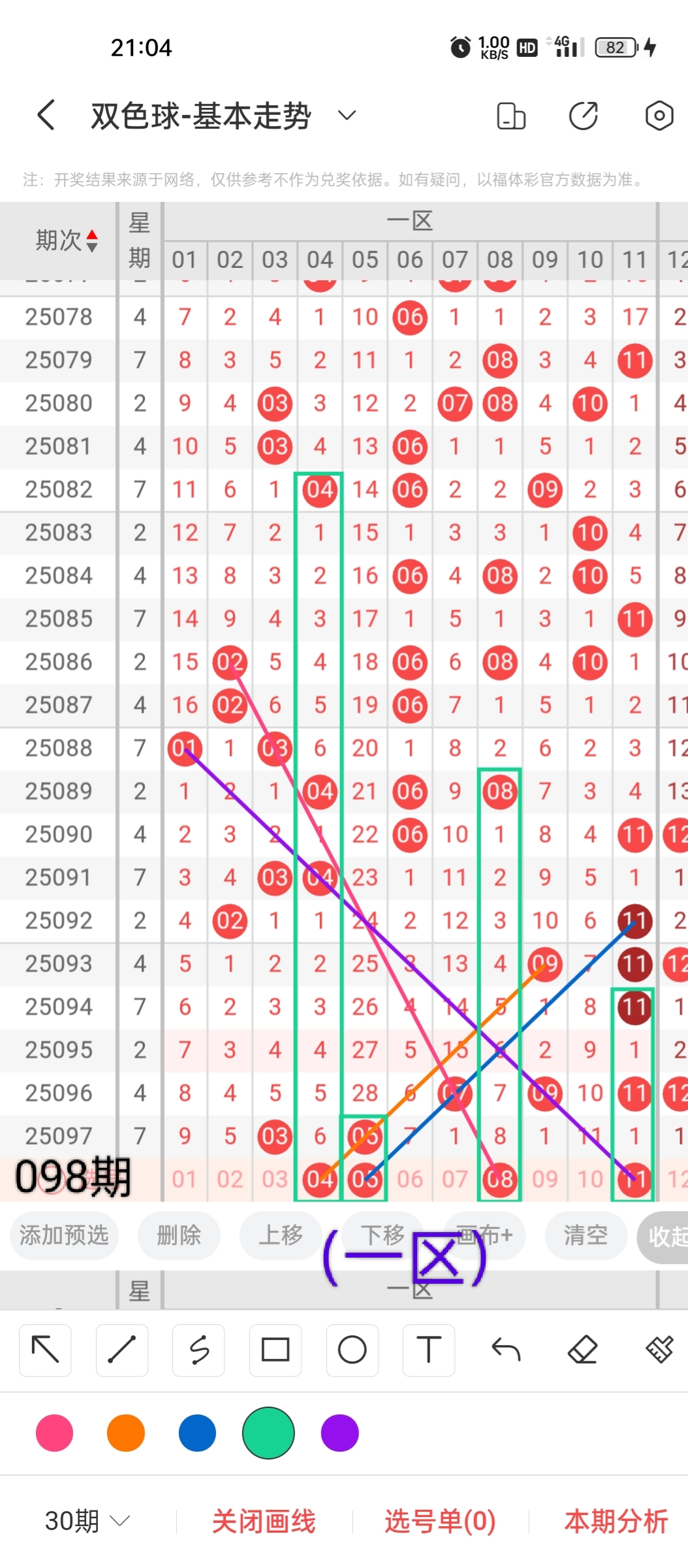 通过以上对上期的简单回顾,下面进入双色球第2025098期(下面简称本期)的选号分析: