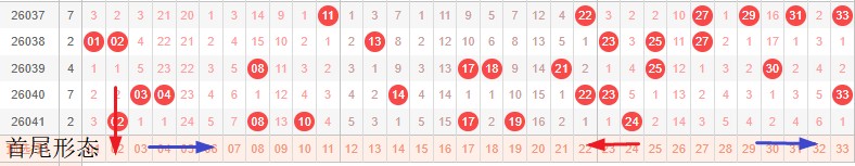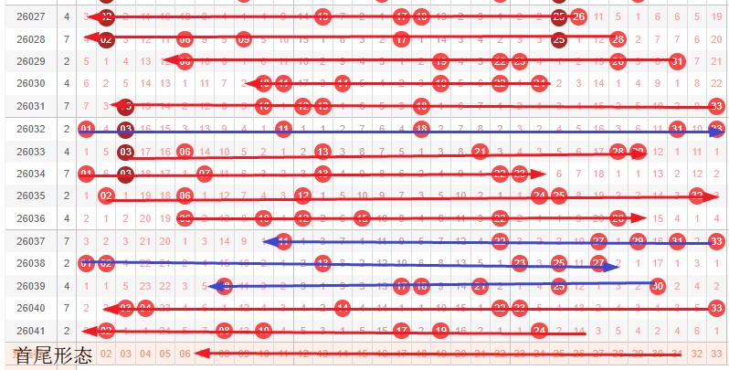 如图所示:首尾制约平衡组范围依次为:推推推,拉推? 本期形态范围优先选择红色压缩首尾。由于上期号码已经进入新走势第3期,目前处在新走势第4期,利用常规起号形成右推还是拉压缩,均定就是走势正反方向。
