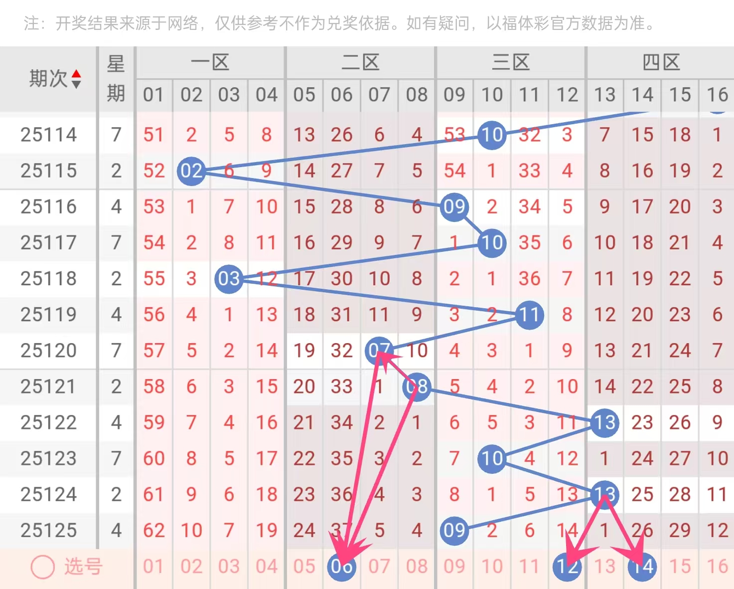 04号:前端号码04显示出明确的回补信号。经过充分调整后,该号码的各项技术指标均显示反弹在即。作为前区偶数代表,04号的开出有望重新激活03-05区段的活力,与10、16等号码形成良好互动。在当前前区整体偏冷的背景下,04号的回补具有重要战略意义。