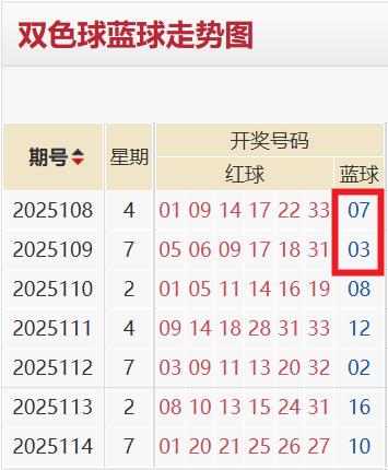 近七期蓝球大小比为3:4;奇偶比为2:5。基于动态平衡干预,本期蓝球倾向于奇数大号。