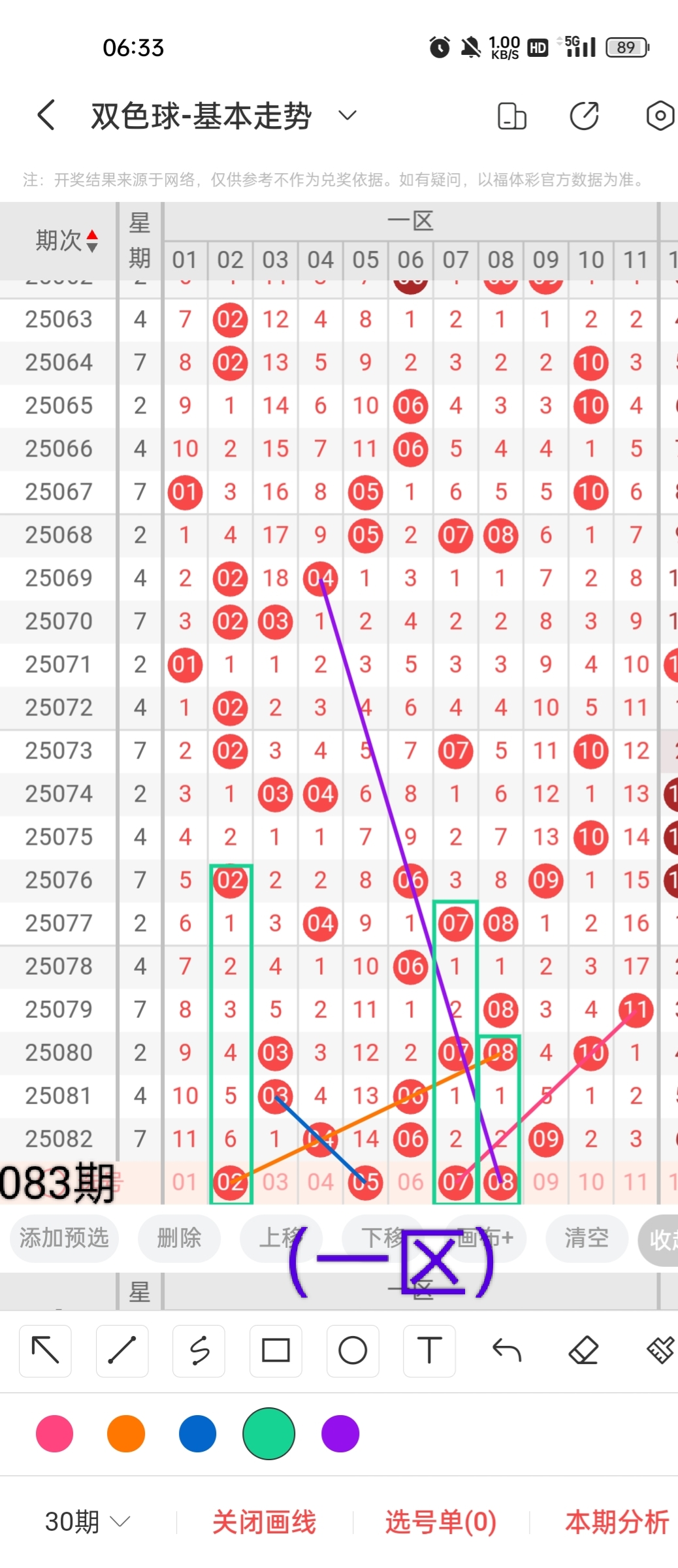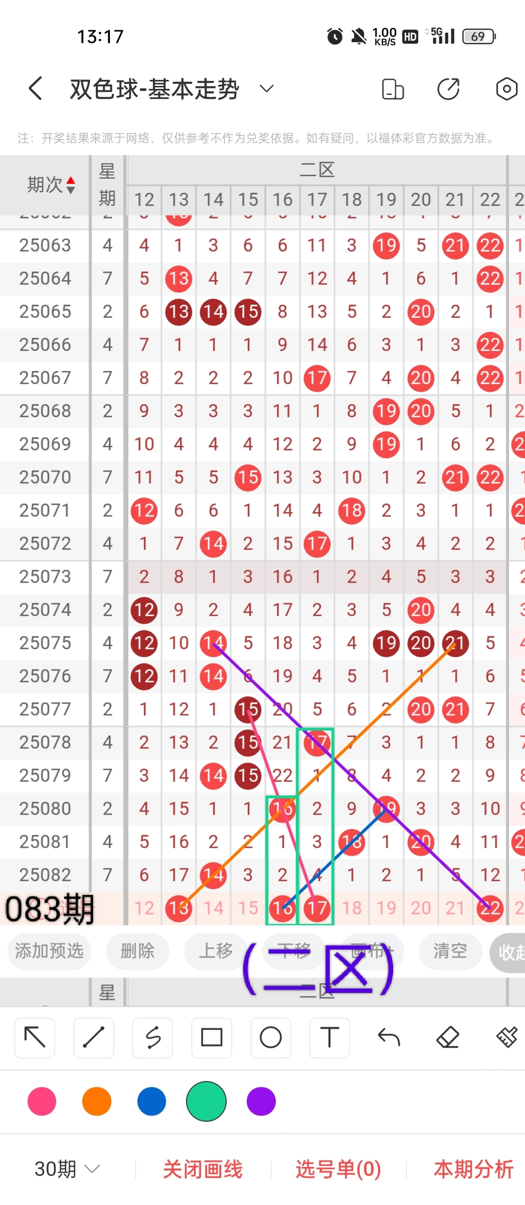 通过以上对上期的简单回顾,下面进入双色球第2025083期(下面简称本期)的选号分析: